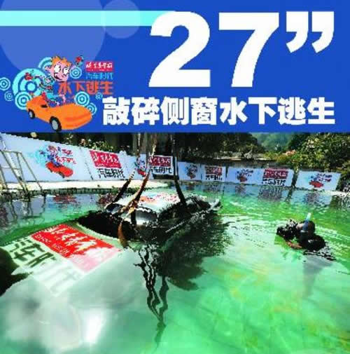 由《北京青年報》舉辦的"車輛落水逃生試驗"上周在懷柔雁棲景區(qū)的巴克公社進行。試驗分三段進行,在車輛落水后,分別驗證了推開車門逃生、砸破側窗逃生和砸碎前風擋逃生。試驗結果顯示,車輛落水后保持鎮(zhèn)定、積極措施自救,是成功逃生的保證。推開車門逃生是最直接、快速的自救方法。