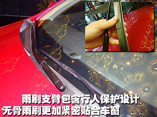 思鉑睿的前風擋采用雨點感應(yīng)式可變間歇式無骨刷,無骨雨刷可以有效的保持前風擋的干凈。