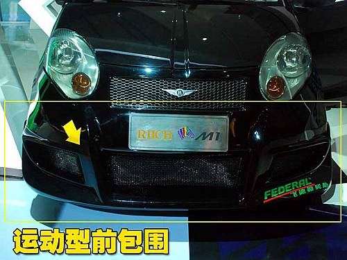 瑞麒M1改裝車的前杠換成了運(yùn)動(dòng)型前包圍,看起來(lái)非常的運(yùn)動(dòng),改裝的相當(dāng)徹底,不是簡(jiǎn)單改改前部,讓車身的感覺(jué)更低。