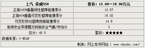 榮威550系列車型還是同級車中率先配備智能汽車輪胎壓力監(jiān)視系統(tǒng)(TPMS),EBA電子剎車輔助系統(tǒng)智能及電子底盤系統(tǒng),大尺寸前后通風(fēng)盤式制動器,標準達到歐洲標準(NCAP)星級碰撞要求。結(jié)構(gòu)整體上采用了鎂鋁合金骨架,強度不亞于鋼制骨架,質(zhì)量輕、強度高,為整車帶來了出色的安全性能和燃油經(jīng)濟性。此外,榮威550還增加了諸多人性化配置,如多功能智能鑰匙、行李箱內(nèi)部緊急開啟、十幾處人性化車內(nèi)儲物空間等。