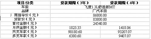 貸款詳解:飛度是小型家用車的典范,這點(diǎn)從它的銷量上就能看出來。缺點(diǎn)么,可能就是大家比較關(guān)心的安全和價(jià)錢問題。總體來說,飛度綜合素質(zhì)較高,是第一臺(tái)車的好選擇。該車首付需2萬余元,月供僅需1400余元,對(duì)于手頭緊張的消費(fèi)者來說還是比較劃算的。