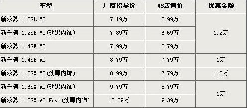 據(jù)北京雪佛蘭4S店銷售人員介紹,目前購(gòu)買新樂騁的消費(fèi)者可以得到最高1.2萬元的優(yōu)惠。新樂騁分為1.2L、1.4L以及1.6L三個(gè)排量車型,經(jīng)1.2萬元優(yōu)惠后,入門級(jí)的1.2L手動(dòng)擋車型的售價(jià)從7.19萬元下降到了5.99萬元,不足6萬元。新樂騁的1.4L自動(dòng)車型以及1.6L自動(dòng)檔車型優(yōu)惠1萬元,最高配的1.6L自動(dòng)導(dǎo)航版售價(jià)降到了9.39萬元,不足10萬元。