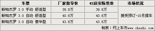 據(jù)三菱汽車4S店銷售人員介紹,帕杰羅3.0L目前已經(jīng)在國(guó)內(nèi)正式上市,售價(jià)39.8萬(wàn)元起。目前這款新車在店里還沒(méi)有現(xiàn)車,展車預(yù)計(jì)會(huì)在月底左右抵達(dá)展廳,而第一批現(xiàn)車主要以自動(dòng)豪華型和自動(dòng)精英型為主,預(yù)計(jì)在10月上旬到店。如果現(xiàn)在預(yù)訂新帕杰羅3.0L最快則要等到十月中下旬才能夠提車。目前購(gòu)買新一代帕杰羅3.0L還沒(méi)有任何優(yōu)惠政策,相信等新車批量到店的時(shí)候,價(jià)格可能會(huì)與少許松動(dòng)。