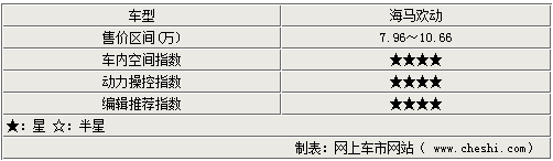 “動感外形”、“靈動操控”、“德系品質(zhì)”是海馬歡動最為突出的三大賣點,從用戶的體驗角度,被形象地概括為“三好”:好看、好開、好用,因此歡動又被稱為“三好轎車”。海馬歡動搭載海馬自主研發(fā)的HA-VIS-1.8Ⅱ型高效能發(fā)動機,不但動力強勁,而且燃油經(jīng)濟性出色。它是國內(nèi)A級兩廂車中首款搭載了CVT的車型,其CVT無級變速器較之傳統(tǒng)液壓助力式AT自動變速器技術(shù)更先進,換檔極為平順,不但能帶來毫無頓挫感的操控享受,還能為歡動帶來15%的節(jié)油提高。同時這款CVT還帶有6速手動模式,可以為追求駕駛樂趣的消費者帶來強烈的操控快感。