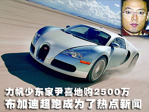 力帆集團是中國最大的民營企業(yè)之一,同時也是國內(nèi)為數(shù)不多的自主汽車品牌生產(chǎn)廠家。主其掌門人尹明善為人低調(diào),而近日其長子尹喜地購買價值2500萬超級跑車布加迪的新聞讓力帆以及尹明善成為了各方關(guān)注的焦點人物。