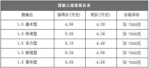 新旗云最低僅售4.28萬