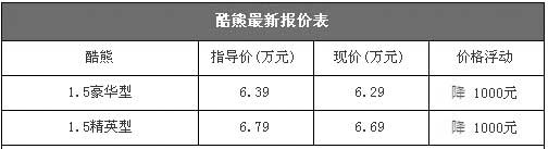長城酷熊的外形個性,但是憑借著突出的性價比以及超大的內(nèi)部空間和1.5LVVT發(fā)動機等賣點,上市后取得了非常不錯的銷量。不過最近幾個月其銷量出現(xiàn)了下滑的勢頭,8月份僅售出1000輛。編輯昨日從北京地區(qū)的一些長城汽車授權(quán)經(jīng)銷商處了解到,近期酷熊的價格非常穩(wěn)定,全系車型僅能優(yōu)惠1000元,購車后可贈送部分裝飾品。以下是長城酷熊最新報價表:
