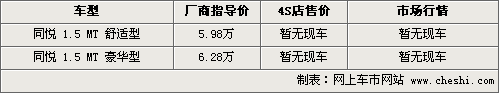 據銷售人員介紹,現在北京授權經銷同悅系列車型的經銷商并不多。各家店內已經開始大量銷售兩廂同悅RS系列車型,問及1.5L的同悅系列時,經銷商表示仍未上市。不過現階段在店內購買1.3L同悅三廂版/RS全系車型可給出3800元的現金優(yōu)惠。