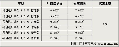 據4S店銷售人員介紹,三廂優(yōu)惠幅度為1萬元,據銷售人員介紹,選購馬2的消費者多數選擇2廂車,而三廂在性價比上更超值。目前豪華版和時尚版有現車供應,入門車型優(yōu)惠后僅為7.68萬。