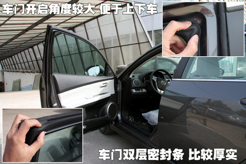 作為一款定為于中高級轎車的馬自達(dá)睿翼,車門在完全打開的情況下開啟角度適中,駕乘人員上下車輛比較方便。在車門四周裝有厚實(shí)且質(zhì)地柔軟的密封條,能夠起到很好的密封隔音作用。