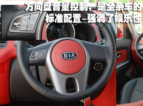 SOUL全系車型的方向盤上方都帶有一個音響控制按鈕,通過這個區(qū)域可以控制收音機、CD、MP3以及各個音樂模式之間的切換。強調(diào)娛樂性絕對是SOUL設計中最大的一個亮點。不過方向盤本身的造型還是比較普通,和剛剛上市的起亞福瑞迪很是相像。