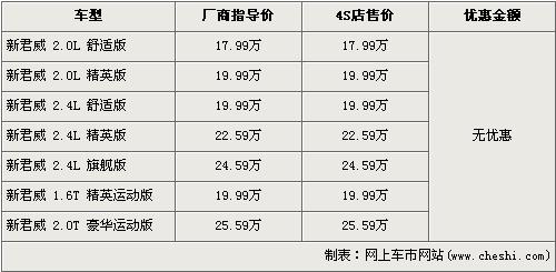 根據(jù)北京別克經(jīng)銷店銷售人員介紹,自別克新君威1.6T上市后,目前別克新君威全系共有7款車在售,售價區(qū)間為17.99萬元-25.59萬元。銷售人員還介紹,店內(nèi)已經(jīng)有新君威1.6T的現(xiàn)車,顏色以紅色和藍色為主,其他車型的現(xiàn)車也比較充足。如果預訂店內(nèi)沒有顏色的車型,需交訂金為1千元,下個月可提現(xiàn)車。