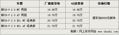 新CR-V全系7款車型有四款2.0排量車型。據(jù)東風(fēng)本田北京地區(qū)4S店銷售人員介紹,目前CR-V加價(jià)繼續(xù)降低,但現(xiàn)在提現(xiàn)車還需加裝8千元的裝飾,裝飾項(xiàng)目包括了腳墊、尾翼、行李架、踏板等。消費(fèi)者可根據(jù)需求選購(gòu),但是消費(fèi)金額必須達(dá)到8千元。目前有黑色、銀色現(xiàn)車供應(yīng),白色車型比較緊張,需要預(yù)訂,訂金為2萬(wàn)元,最快年底前可以提到車。北京地區(qū)各4S店由于訂單不同,各店銷售的現(xiàn)車顏色有所不同。