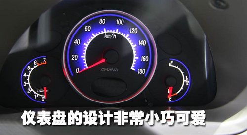 長安奔奔Mini的儀表盤采用藍色背景光設計,這款車的儀表盤表面還帶有長安轎車的LOGO。另外,圓潤的儀表盤位置比較高,但內部的表盤設計卻非常簡潔明了。