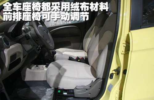 長安奔奔Mini的全車座椅都采用絨布材料,雖然缺乏幾分豪華感,但座椅表面非常柔軟,而且座椅四周的包圍都比較到位,乘坐舒適性都讓人滿意。與其他微型轎車一樣,長安奔奔Mini前排座椅都采用手動四向調節(jié)方式。