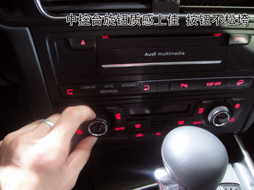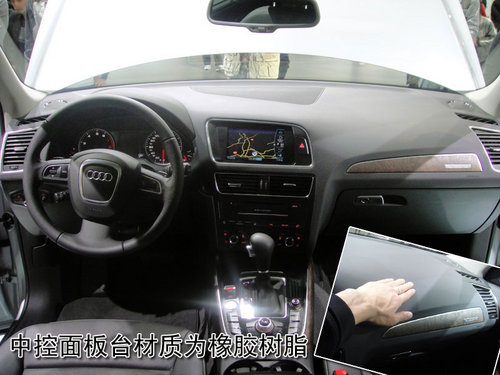 奧迪Q5儀表臺的整體感覺與奧迪家族的其它車型高度統(tǒng)一,略向駕駛員一側(cè)偏轉(zhuǎn)的儀表臺照顧到了駕駛員在駕車當中的操作便捷性。與奧迪家族跑車相同的儀表盤布局增添了奧迪Q5的運動氣息。中控臺大量使用橡膠樹脂材質(zhì),手感較硬。