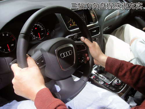與進(jìn)口Q5不同,國產(chǎn)Q5采用的是三幅邊式方向盤設(shè)計(jì),并且運(yùn)用真皮包裹,正中央道奇四環(huán)徽標(biāo)采用鍍鉻處理,提供了鮮明的觸感及視覺效果。