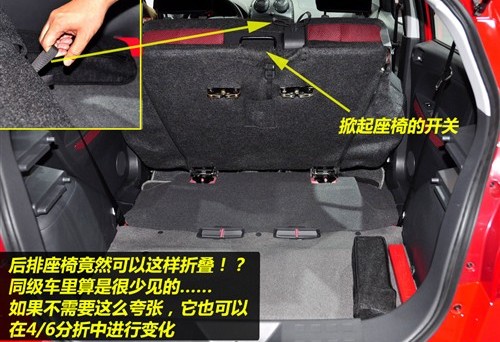 除此之外丘比特的后排座椅變換方式也比較多樣,在車(chē)主需要擴(kuò)展后備廂空間時(shí),首先可以按比例放倒后排椅背,如果還嫌不夠可將整個(gè)后排座椅掀起,此時(shí)空間進(jìn)一步增大而且地板是完全水平的,兩種變換方式可以應(yīng)對(duì)不同的使用情況,較高的靈活程度增加了后備廂的實(shí)用性。