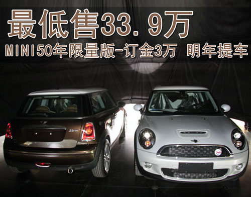 據(jù)北京經(jīng)銷店銷售人員介紹,MINI50周年分為Mayfair和Camden兩款車型,售價分別我餓哦33.9萬元和37.9萬元。目前店內(nèi)已經(jīng)可以接受MINI50周年紀(jì)念版車型的預(yù)訂,訂金為3萬元,最早一批現(xiàn)車將會在明年的2月份交到消費(fèi)者的手里。