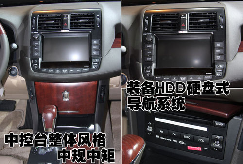 新皇冠的中控臺(tái)按鈕的設(shè)計(jì)均勻的布局在顯示屏四周,下方為隱藏式CD設(shè)計(jì)。整體的風(fēng)格上顯得過(guò)于沉穩(wěn)而顯得活力不足。同時(shí)裝配的HDD硬盤(pán)式導(dǎo)航系統(tǒng)等多項(xiàng)高端配置為消費(fèi)者提供了更多的尊貴享受。