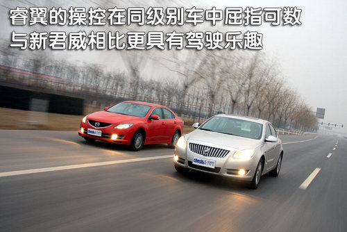 睿翼如同上代馬自達(dá)6一樣,具有同級(jí)車中較好的操控性,經(jīng)過了幾天兩輛車的試駕,感覺睿翼在操控樂趣上更勝一籌,但對(duì)于工作商務(wù)新君威的舒適性以及米色內(nèi)飾更為適用。從初步駕駛感覺來說,兩款車都可以較快的上手,操作上很簡單。