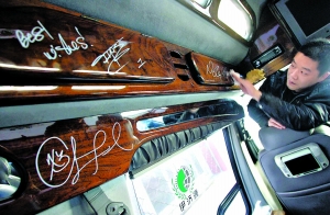 “小皇帝”詹姆斯、姚明隊(duì)友“麥蒂”、“大鯊魚”奧尼爾、“蜂王”保羅、“小黑豆”布魯克斯、法國足球巨星亨利、“香港天王”劉德華……司機(jī)白先生駕駛著一輛美國進(jìn)口道奇公羊商務(wù)車,每天他都會擦拭著車內(nèi)這些明星們的簽名,這輛車也成了名副其實(shí)的“明星專車”。