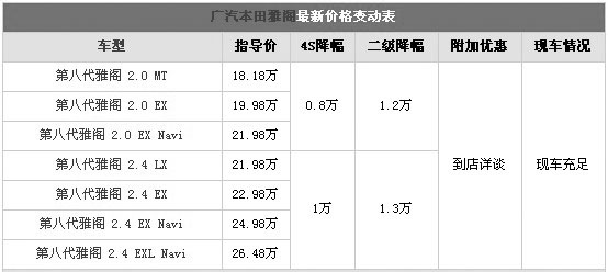 日前車天下汽車網記者從廣本4S店了解到,雅閣系列的車型優(yōu)惠幅度在8000-1萬元之間,不過在二級市場上,2.0L優(yōu)惠1.2萬,2.4L最高優(yōu)惠已經達到了1.3萬,其中2.0L手動基本型最低僅為16.98萬,關注該車的消費者可咨詢該經銷商。