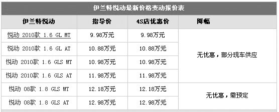 據(jù)北京現(xiàn)代4S店銷售人員介紹,2010年1月1日起1.6L及以下排量購(gòu)置稅上調(diào)至75%,所以目前悅動(dòng)1.6L車型銷售火爆,沒有任何優(yōu)惠,1.6L有部分現(xiàn)車供應(yīng),顏色方面有白色、黑色、銀色可供選擇。1.8L車型則需要預(yù)訂,根據(jù)顏色不同,預(yù)訂最快半個(gè)月可以提到車。北京地區(qū)各4S店由于訂單不同,各店銷售的現(xiàn)車顏色有所不同。