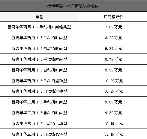2009年3月6日,長安福特正式宣布,福特新嘉年華正式在國內(nèi)上市,先期上市的兩廂和三廂共11款車型價格從7.89-11.19萬元,從即日起,消費者就可以到長安福特授權(quán)福特品牌經(jīng)銷商處預訂新嘉年華。