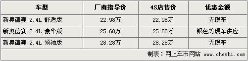 據(jù)廣汽本田4S店銷售人員介紹,新奧德賽訂單一直在持續(xù)增加,現(xiàn)無任何優(yōu)惠。店內(nèi)現(xiàn)有2.4L豪華版部分現(xiàn)車供應,其它車型顏色并不齊全需要預定,預定訂金為1000元,1月初左右就可以提到車。如需了解購車詳情,請咨詢當?shù)亟?jīng)銷商處。北京地區(qū)各4S店由于訂單不同,各店銷售的現(xiàn)車顏色有所不同。