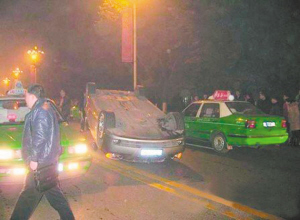 車水馬龍的主干道上,一輛嶄新的寶馬5系轎車四輪朝天,道路兩旁停滿了出租車……3日凌晨零時(shí)許,這一幕出現(xiàn)在樂(lè)山市區(qū)牛咡橋附近的嘉定路路段。目擊者說(shuō),事情緣于一輛出租車和寶馬車的紛爭(zhēng),出租車“受氣”后引來(lái)了更多的出租車,眾的哥和現(xiàn)場(chǎng)圍觀者一齊將寶馬車翻了個(gè)底朝天。