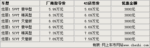 據(jù)長(zhǎng)城汽車4S店銷售人員介紹,炫麗1.5L在元旦前可以優(yōu)惠3000元,并贈(zèng)送3000元的禮包。但元旦之后,炫麗的優(yōu)惠幅度有所減少,目前購(gòu)買1.5L車型只能優(yōu)惠3000元現(xiàn)金。另外,炫麗天窗版一直都沒有現(xiàn)車銷售,預(yù)訂需要等1個(gè)月左右。