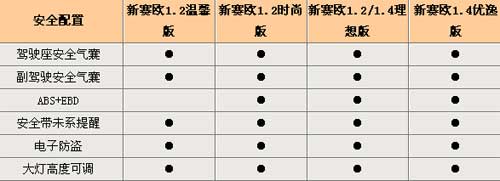 舒適配置是拉開車型價(jià)格的主要措施,這一點(diǎn)是很多車型通常的做法,新賽歐也不例外。不過(guò),其1.2L和1.4L車型在基礎(chǔ)舒適配置上面還是比較平衡,中控鎖,發(fā)動(dòng)機(jī)電子防盜,安全帶未系提醒,前排電動(dòng)車窗,后視鏡電動(dòng)調(diào)節(jié)都是標(biāo)配。