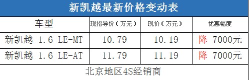 自2010年1月4日起,對別克凱越車型系列進行優(yōu)化精簡,在售車型僅保留1.6LE AT(自動舒適版)和1.6LE MT(手動舒適版)兩款,同時市場售價調(diào)整為11.79萬元和10.79萬元,媒體紛紛猜測這種官方降價是在為英朗騰出價格空間。編輯從北京地區(qū)通用別克4S經(jīng)銷商處了解到,目前凱越兩款車型均有銀色現(xiàn)車在售,購車可以優(yōu)惠7000元現(xiàn)金。據(jù)經(jīng)銷商透露,消費者要想以這個價格提車,需要在店內(nèi)做一條龍服務,其中車輛四項基本保險可以打9折。以下是凱越最新價格變化表: