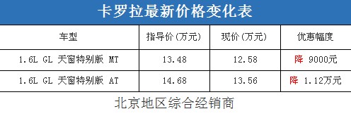 近日,編輯從北京地區(qū)綜合經(jīng)銷商處了解到,卡羅拉有1.6L特別版現(xiàn)車(銀色、黑色、紅色);目前購車的優(yōu)惠幅度與09年末相比有了顯著提升,最高優(yōu)惠1.12萬元,性價比還不錯。據(jù)經(jīng)銷商透露,消費者要想以這個價格提車,需要在店內(nèi)做一條龍服務(wù),其中車輛保險的折扣需要消費者到店與銷售人員詳談才能夠確定。以下是卡羅拉最新價格變化表: