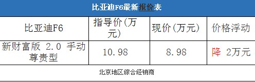比亞迪F6:入門中型車,最低不到9萬元