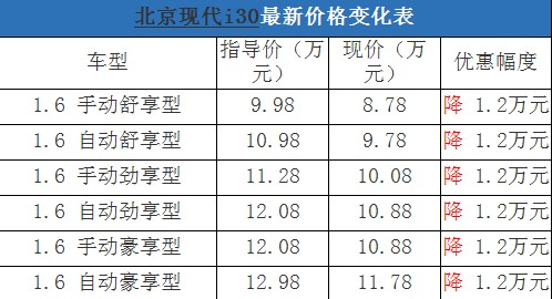 近日,編輯從北京地區(qū)北京現(xiàn)代4S經(jīng)銷商處了解到,現(xiàn)代i30有較為充足的現(xiàn)車銷售(紅色、銀色和灰色),可以滿足消費(fèi)者在春節(jié)前夕的購車需求。目前在4S店中購車可獲贈價(jià)值1萬元的裝潢禮包,經(jīng)銷商表示這個(gè)優(yōu)惠可以折現(xiàn),但具體金額需要消費(fèi)者到店詳談才能確定。相比之下,現(xiàn)代i30在綜合經(jīng)銷商處的優(yōu)惠幅度更加可觀,1.6L車型可以優(yōu)惠現(xiàn)金1.2萬元。以下是現(xiàn)代i30最新價(jià)格變化表: