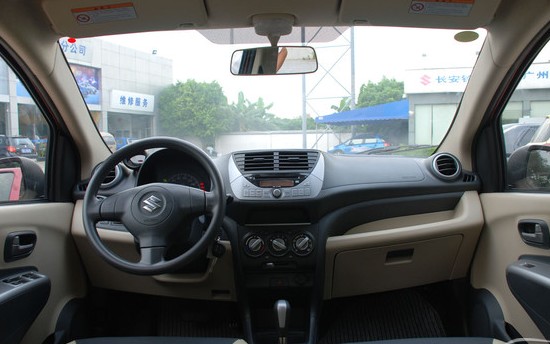 新奧拓的內(nèi)飾里可以看到不少熟悉的元素,比如方向盤就跟雨燕一模一樣。儀表盤設(shè)計得很可愛,轉(zhuǎn)速表被單獨放置在中控臺左角,小表盤增加了一些卡通色彩。而常規(guī)儀表盤的位置只有一個超大的表盤,顯示的是時速,讀取行車信息因此相當(dāng)便利。新奧拓的內(nèi)飾設(shè)計整體人給人感覺是比較大氣,不太像一款微型車的感覺,這里面可能有復(fù)合式中控臺的因素。