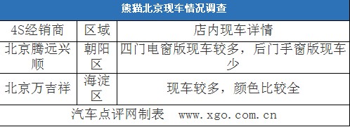 北京地區(qū)僅有兩家熊貓4S經(jīng)銷商,調(diào)查結(jié)果顯示,熊貓四門(mén)電窗版車(chē)型現(xiàn)車(chē)數(shù)量充裕,顏色較全,而后門(mén)手窗版車(chē)型現(xiàn)車(chē)較少,需預(yù)定。價(jià)格方面,兩家4S店的報(bào)價(jià)比較統(tǒng)一,均表示能現(xiàn)金優(yōu)惠4000元,購(gòu)車(chē)后可贈(zèng)送一些裝飾品,詳情需要到店面談。