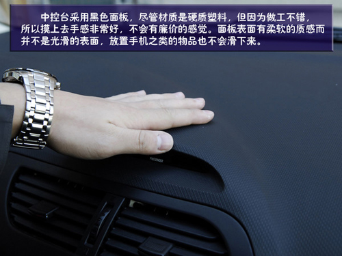 空調(diào)控制區(qū)就更加簡(jiǎn)潔了,幾乎把所有的功能就集合在兩個(gè)旋鈕上,而且設(shè)計(jì)巧妙的是旋鈕雙層設(shè)計(jì),分別控制不同功能。但在使用時(shí)我們發(fā)現(xiàn)旋鈕的指示標(biāo)是一個(gè)小的凹槽,在光線不足是可以看到是一個(gè)小燈,但在白天時(shí)這個(gè)凹槽并不十分明顯,可能會(huì)造成讀取的小障礙。