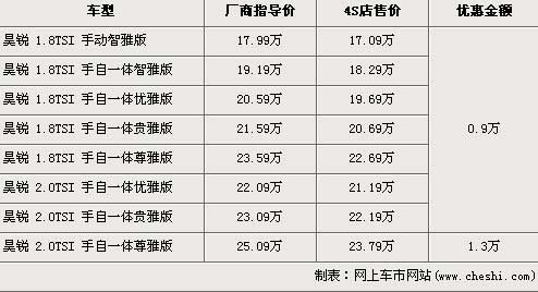 據(jù)北京斯柯達(dá)經(jīng)銷店銷售人員介紹,斯柯達(dá)昊銳共分為8個車型,售價區(qū)間為17.99-25.09萬元。目前店內(nèi)昊銳全系除了最高配的2.0T尊雅版以外其他車型均優(yōu)惠9000元,經(jīng)優(yōu)惠后,昊銳入門級售價降到了17.09萬元。最高配的2.0T尊雅版更是有1.3萬元的優(yōu)惠,售價從25.09萬元降到了23.79萬元。