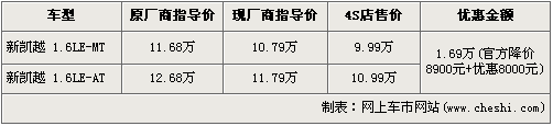 據(jù)北京別克經(jīng)銷店銷售人員介紹,目前別克凱越只有1.6L手動舒適版以及1.6L自動舒適版兩款車型在售,其他車型均已不再銷售。別克對這兩款在售車型進行了統(tǒng)一官降8900元,并且在經(jīng)銷店購車還可以得到8000元的現(xiàn)金優(yōu)惠,兩款車型的售價分別降到了9.99萬元和10.99萬元。銷售人員還介紹,店內(nèi)兩款車型現(xiàn)車充足,消費者挑選的空間很大。