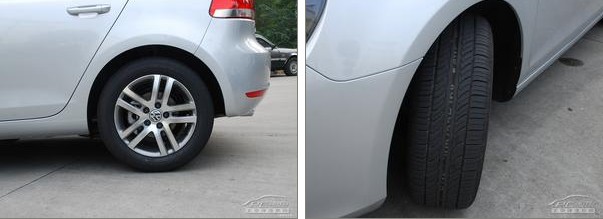 高爾夫6采用的是前麥弗遜式,后四連桿獨(dú)立懸掛設(shè)計(jì)。相比扭力梁式后懸掛,高爾夫的四連桿有更大調(diào)整空間,同時(shí)舒適性也有優(yōu)勢(shì)。輪胎規(guī)格是205/55R16,配16寸鋁合金輪圈。