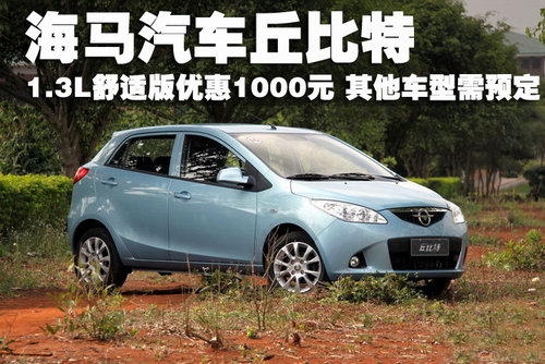 據(jù)海馬汽車(chē)4S店銷(xiāo)售人員介紹,在丘比特4款車(chē)型當(dāng)中,售價(jià)5.89萬(wàn)元的1.3L手動(dòng)舒適型性?xún)r(jià)比較高,也已成為丘比特銷(xiāo)售的主力車(chē)型,可以享受1500元的現(xiàn)金優(yōu)惠。其他兩款1.3L車(chē)型和1.5L車(chē)型均無(wú)現(xiàn)車(chē),如想預(yù)訂需要交2000元訂金,到車(chē)時(shí)間為1個(gè)月左右。