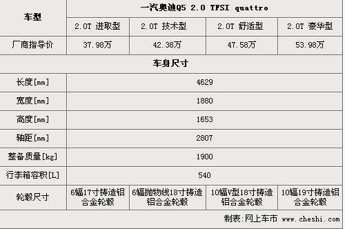 奧迪Q5 4款車(chē)型的長(zhǎng)寬高均為4629mm*1880mm*1653mm,雖然從外形上看,奧迪Q5與奔馳GLK、沃爾沃XC60等競(jìng)爭(zhēng)對(duì)手相比,體型略顯中等,但是2807mm的軸距在這幾款SUV車(chē)型中可以算得上是數(shù)一數(shù)二的了,這也就意味著奧迪Q5的內(nèi)部空間將更加充裕。