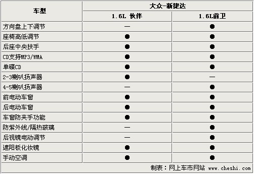 新推出的兩款車型保證了基本的舒適性及娛樂性,座椅高低調(diào)節(jié)及后排中央扶手提供了基本的配置。支持MP3/WMA的單碟CD音響方便了使用,兩款車只是在喇叭數(shù)量上有所區(qū)別。全車標(biāo)配電動(dòng)門窗,對于捷達(dá)較低的價(jià)格而言也算難能可貴。但方向盤上下調(diào)節(jié)、防紫外線/隔熱玻璃、后視鏡電動(dòng)調(diào)節(jié)在伙伴上并沒有出現(xiàn)。可以看出,廠家對于這款經(jīng)濟(jì)型轎車的成本控制還是很嚴(yán)格的。