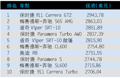第一名跟第十名的保費差距大約也才只有240美金,而在前十名之后的11~20名中,基本上都是梅賽德斯·奔馳的天下,包括CL65 AMG、S600、SL65 AMG以及CL63 AMG都入選在內,除此之外,還有寶馬M6(硬頂及敞篷版)和760i以及兩款捷豹XKR機械增壓版本。不過,文章并沒有講明保險金額的實際保障內容是什么,所以跟國內的保費也不太好比較?墒牵梢钥闯,榜單中的這些車輛售價也并不便宜,這點兒保費還真不算什么。(記者陳鑫欣)