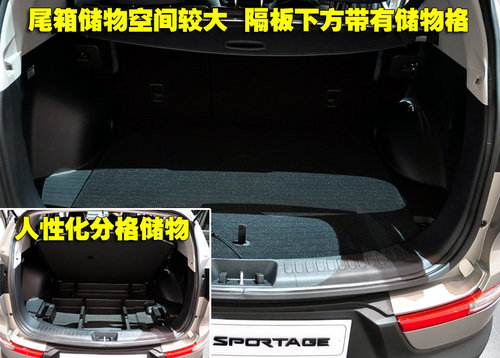 對(duì)于起亞SLC而言,儲(chǔ)物是它的最大強(qiáng)項(xiàng),當(dāng)后排座椅完全放倒下,備箱儲(chǔ)物空間進(jìn)一步加強(qiáng)。另外備箱的開(kāi)口也很大,便于取放較大的物品。備箱隔板下另設(shè)有暗藏的儲(chǔ)物格,并且?guī)в蟹指粼O(shè)計(jì),存放小物品時(shí)也更加方便,人性化設(shè)計(jì)值得稱(chēng)贊。