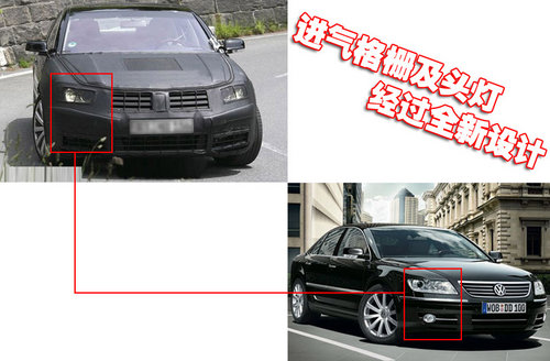 大眾新輝騰前臉采用上下分層的橫條形進(jìn)氣格柵,照明燈組大量使用LED照明。從曝光的新輝騰路試諜照看,前臉應(yīng)該是其改變的重點(diǎn),而在側(cè)面和尾部設(shè)計(jì)上變化將不會(huì)很明顯。