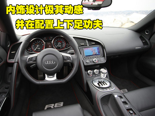 在內(nèi)裝飾設(shè)計上也有不同于V8車型的設(shè)計,全黑色調(diào)搭配鋁以及碳纖維裝飾,營造動感豪華的氛圍。在配置上也十分奢華,奧迪看家的配置幾乎都可以在奧迪R8 V10超跑的身上找到。